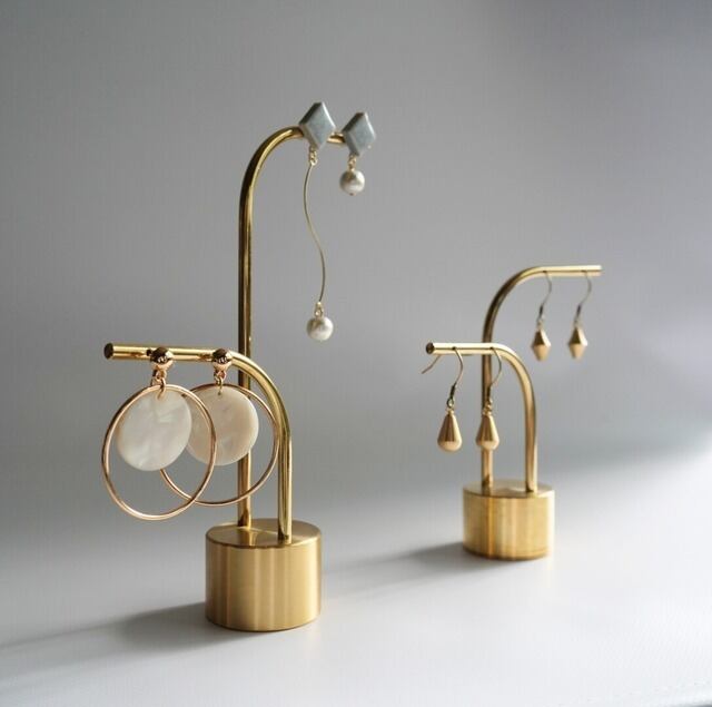 ピアス スタンド 真鍮 ケース 収納 ボックス トレイ アクセサリー ディスプレイ ゴールド おしゃれ かわいい 大容量 少量 プレゼント ギフト 撮影用 アンティーク 小さめ メンズ 店舗 店頭 展示 ツリー シンプル キャッチ イヤリング【R型 2本】【日本製】kmetal | kmetal